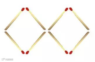 如何移动其中两根火柴,把两个菱形变成一个菱形?