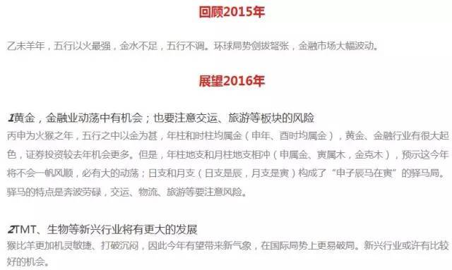 今年1月底,他们又发布了2016年的风水报告。咱们就来看看他是怎么神(hu)机(che)妙(ba)算(dao)的。