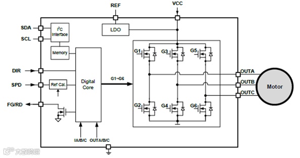 MPQ6634则是一款集成了功率 MOSFET 和无位置矢量控制算法的三相无刷直流电机驱动芯片。矢量控制算法使得 MPQ6634 能够精确地控制磁场的大小和方向,从而减小损耗、提高效率、降低转矩脉动和噪声。因此 MPQ6634 具有高效的动态响应和控制精度。同时,无位置算法让芯片的安装位置更加灵活,避免了安装精度对电机运行性能的影响,降低了生产安装的工艺难度,扩展了芯片的应用场合。