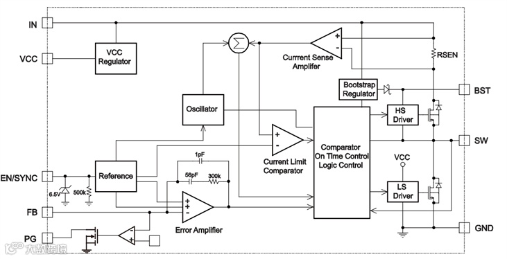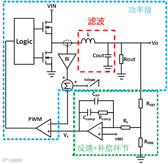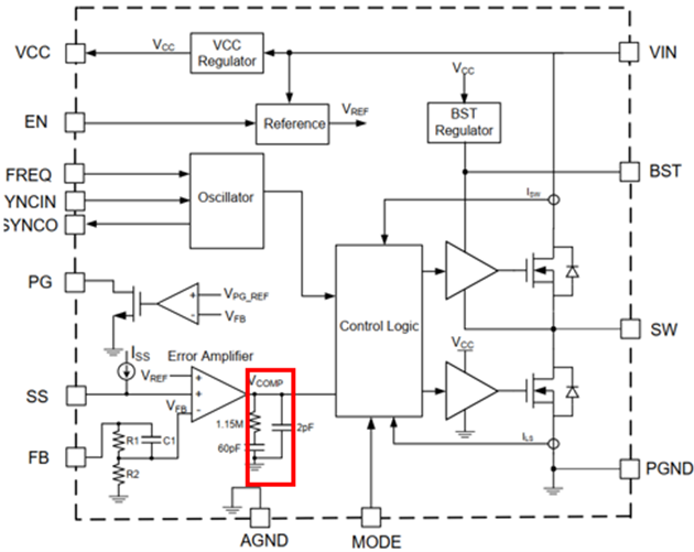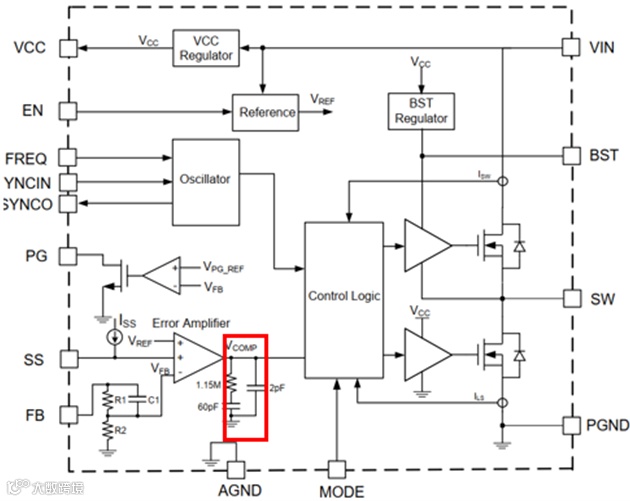 根据芯片的内部框图也可以看出在实际应用中,为了实现更高的集成度和更简单的外围电路,很多芯片都把补偿网络集成在了芯片内部,那么就需要通过调节芯片外部的其他参数对环路进一步优化。