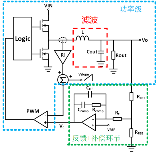 其中,蓝色框圈出的为系统的功率级,可以推导出其对应的传递函数及主要变量的关系式。