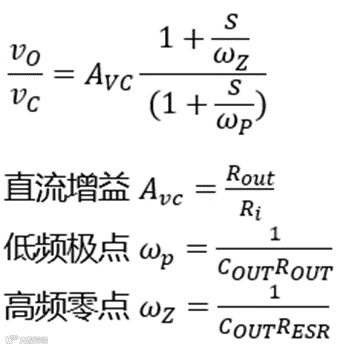 这一部分通常是系统固有的传递函数,与采用的电源拓扑(Buck)、控制方式(峰值电流控制)、工作模式(CCM),滤波参数(L/C)以及负载电流等有关。当系统的输入\输出电压及负载电流等条件确定后,所采用的拓扑、控制方式、工作模式及负载电流也相应确定,而基于CCM控制模式,功率电感对环路影响较小,所以功率级通常调整的主要参数是输出电容。