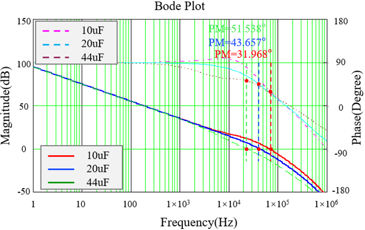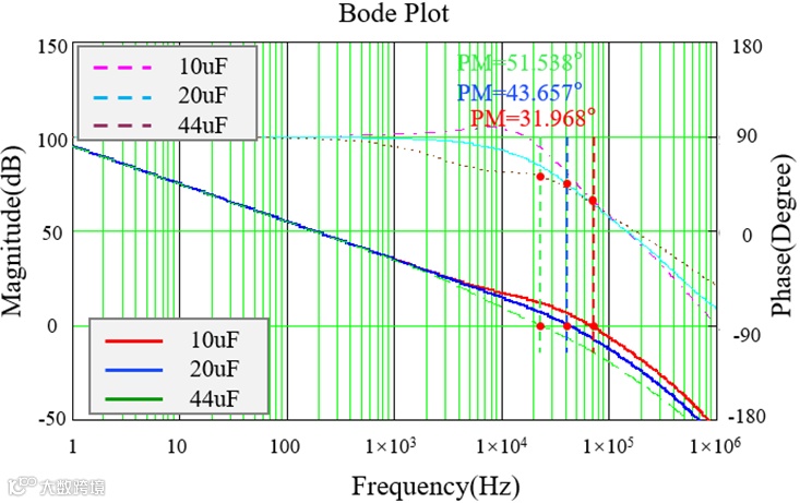 图5:不同输出电容大小对系统伯德图的影响