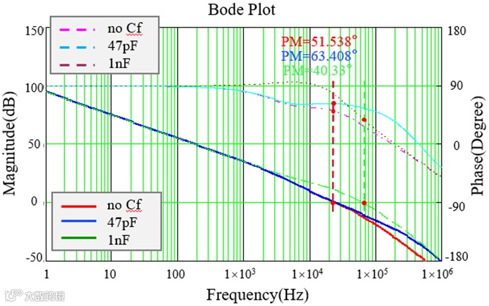 图7:不同前馈电容对系统伯德图的影响
