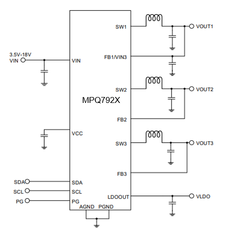 针对某些应用,对体积和效率有比较高的要求,例如车载摄像头等部件,因为整体的产品体积小,从而对方案的尺寸,效率,温升等有较高的要求。MPS利用自身先进半导体制程,丰富系统设计经验,专门开发了一款车载摄像头的电源管理芯片,MPQ792X。