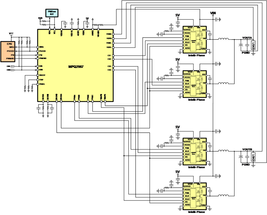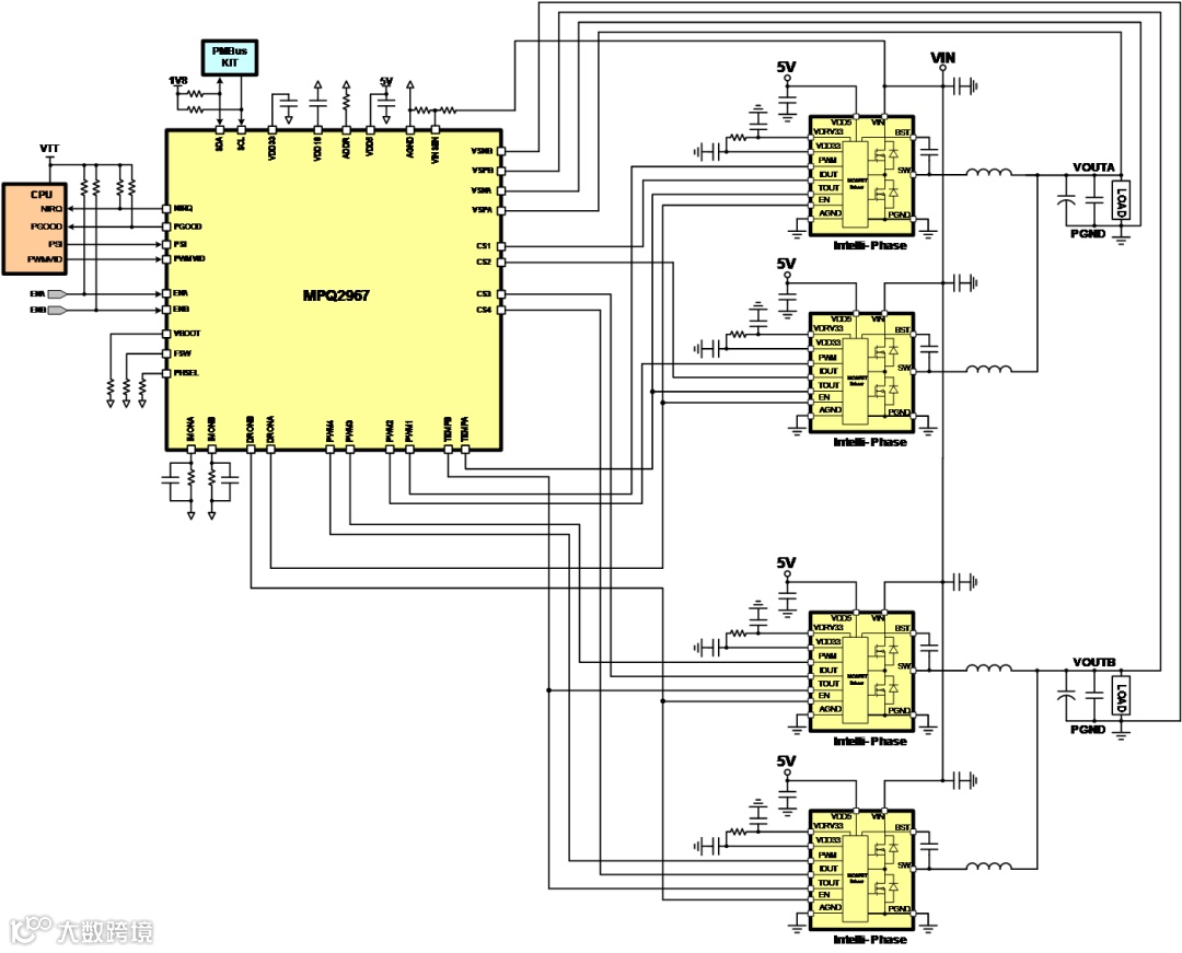 图3:MPQ2967+Intelli-PhaseTM DrMOS方案框图