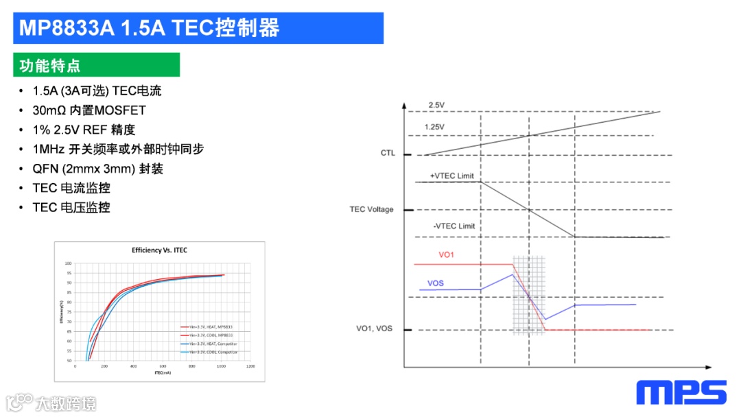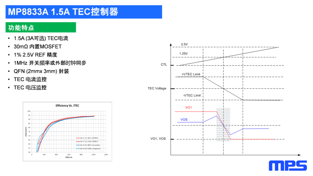 MP8833A 则是一款 1.5A (3A可选)电流能力的 TEC 控制器: