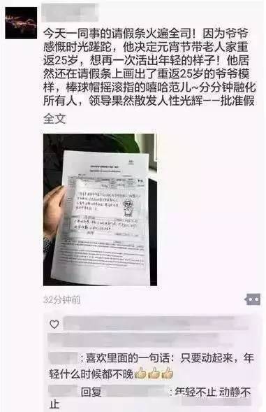 领导的批复,你万万想不到“只要动起来,年轻什么时候都不晚,即使是到80岁。批准假期。让年轻活出动静”