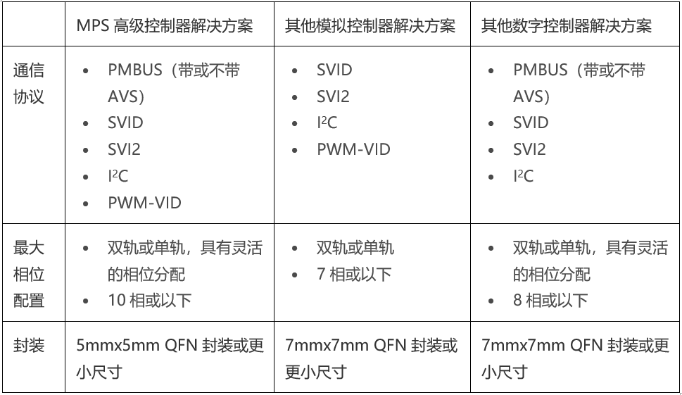 表1:高级控制器 vs. 模拟和数字控制解决方案
