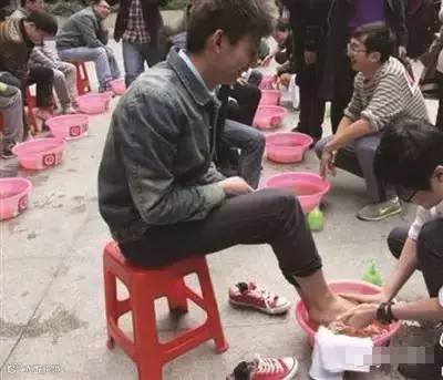 老板亲自为员工洗脚啊,老板这么好,明年还要不要再来呢??