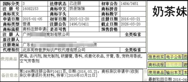 圣哥今天也要爆出猛料,“奶茶妹妹”被国内一家做情趣用品的公司注册成性爱娃娃商标了。
