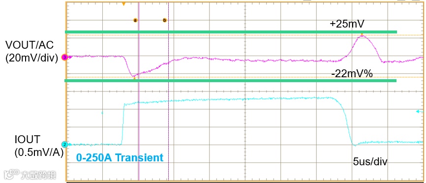 (VIN=12V; VOUT=0.75V; 100A/us切换速率;0A-250A动态切换)