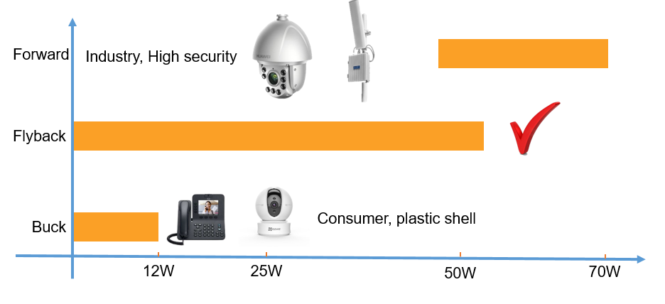 综合考虑成本和应用场合。非隔离拓扑成本低,但是安全性不高,主要在小功率消费类产品中应用,例如IP-phnoe以及室内IP-camera等。隔离类拓扑,安全性高,在室外或者大功率的应用场合比较常见,例如工业AP或者5G小基站等等。