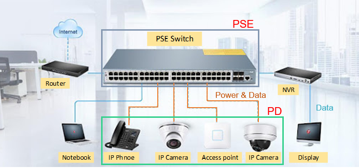 POE供电是一种利用网线来传输功率的供电方案,由供电设备PSE,受电设备PD以及网线构成。随着IP设备应用的普及,POE供电凭借着安装成本低,易扩展,好管理以及全球兼容等特点,深受到广大用户的喜欢。