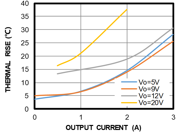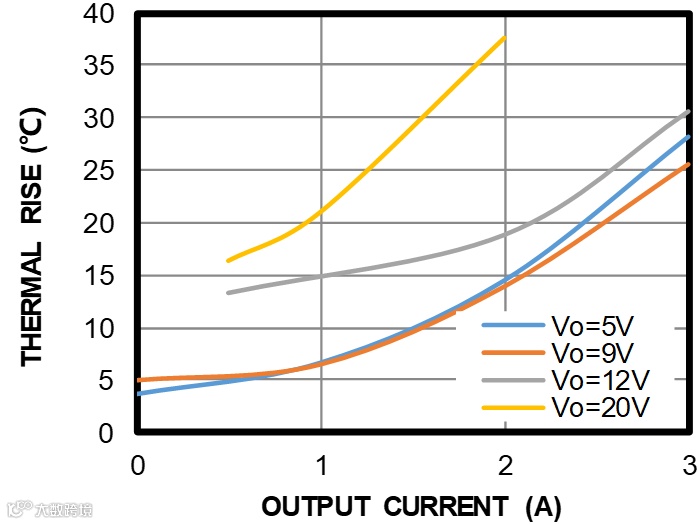 MP28167-A卓越的转换效率,让它的温升表现也非常好。MPS 的评估板上,输入12V,输出12V、3A时,芯片的壳温仅上升了30℃。