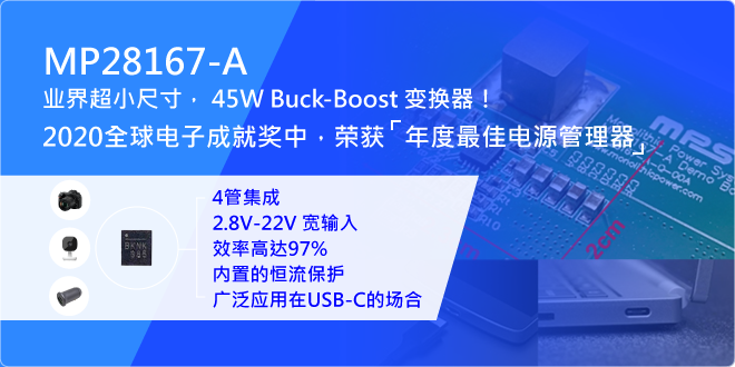 热烈祝贺MPS公司的Buck-Boost产品:MP28167-A,在ASPENCORE主办的2020年全球电子成就奖中,荣获“年度最佳电源管理器”称号!