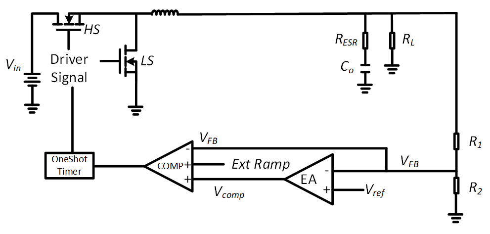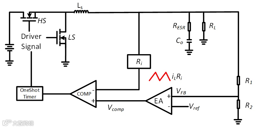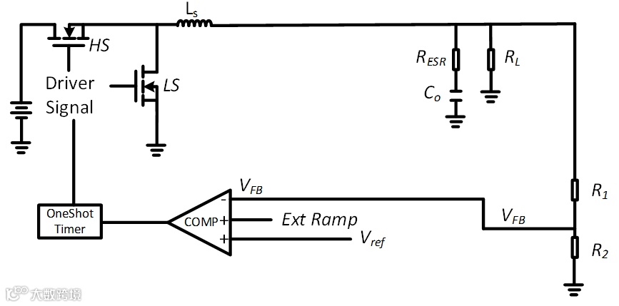 COT控制本质属于电压型控制模式,一般结构框图如下图:
