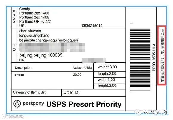 使用PostPony平台上的USPS Presort生产线将包裹寄回中国,朋友需要打印两个运单,一种是带有PostPony徽标的运单,另一个是转储单,该转储单的目的是使UPS易于识别出包裹是由他们收集的。UPS将包裹运送到我们的USPS Presort中转仓库时,该转储单已完成其任务。因为USPS Presort线的运输方式是:UPS在美国收集,然后由USPS运到中国。
