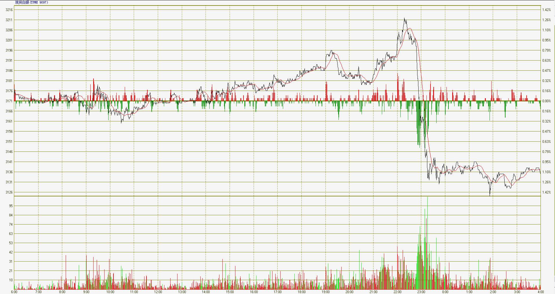 上周人民币无疑是市场关注的焦点,人民币连续大幅贬值令全球金融市场波动加剧,避险情绪升温,市场普遍预期美联储将推迟加息,美元大幅回落,美元指数一度跌破96关口,现货白银大幅反弹,虽然上周五现货白银冲高回落,但短周期均线系统依然呈现出明显的多头排列。