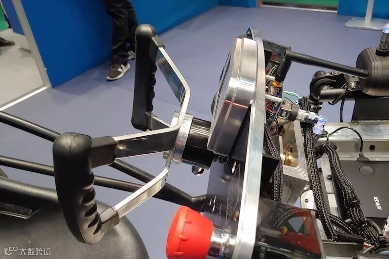 图6:从左到右,依次为方向盘、仪表盘和用来测量转向柱角度的角度传感器。