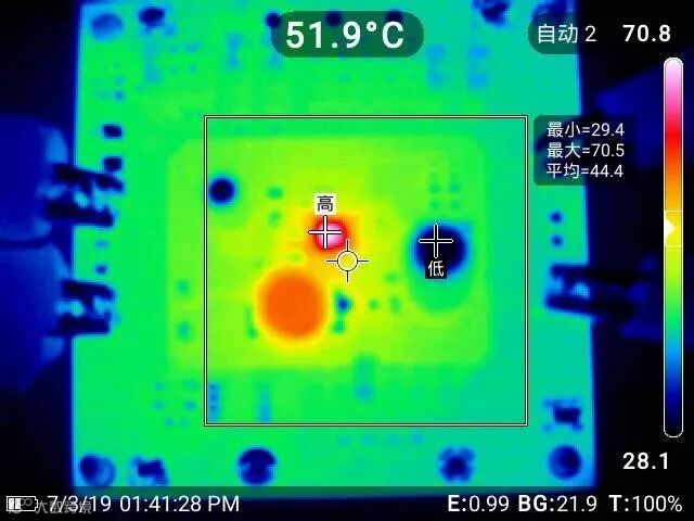 小身板,大能量!MP2759采用QFN3X3封装,用超小的体积,实现97%的高效充电,即使在3A的充电电流下,也只有45.5℃的温升!(下图测试条件:VIN=16V, VBATT=12V, ICHG=3A)