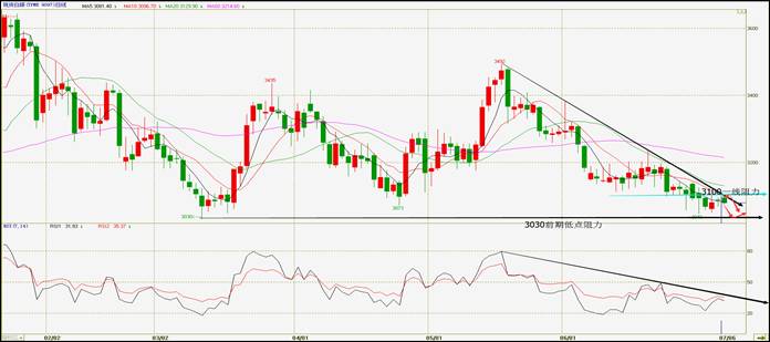 空单持有者上方关注3130阻力位,如上破应果断离场,止盈3070/3050。多单持有者下方关注3030支撑位如下破应果断离场。
