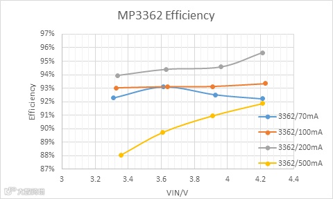 因为效率、热表现、以及内置管子的阈值电压的缘故,超低的输入电压一直是一件可怕的事情。MP3363输入电压可低至1.8V(两颗干电池应用),而且热和效率的表现都很好,不得不说是个朴实的大能力者。