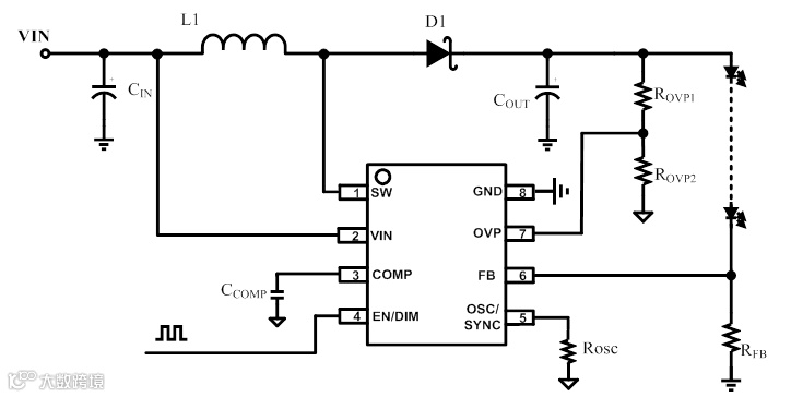 在很多电子产品中,WLED的驱动模块总是耗能的大头,所以效率对于WLED驱动芯片来说当然是至关重要的。