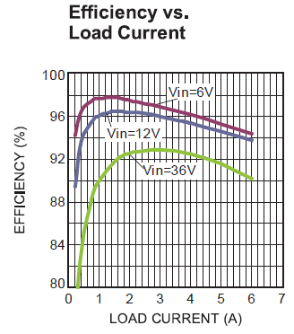 图4. Vin=12V, Vout=5V时,峰值效率高达96%.