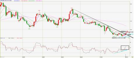 从日线图来看,上周现货白银连续反弹,目前已经站上了20日均线,且突破了上方压力线,可以说短期内维持强势,目前美元指数承压于98关口,本周白银或将延续反弹的走势,投资者可考虑逢低进多,上方关注2950阻力,下方关注2830一线支撑,短线可关注2900短周期均线附近支撑。
