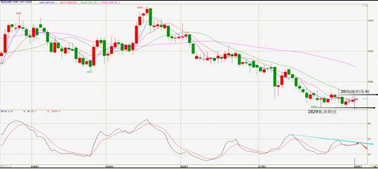 从现货白银的日线图来看,近几日现货白银连续收小阳线,现已站上短周期5日和10日均线,但总体维持了低位震荡的走势,RSI指标也在50之下,建议维持高空的思路,上方关注20日均线阻力,下方关注2829低点附近支撑。