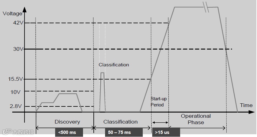图2: PoE处理期间的PSE信号 (IEEE 802.3af)