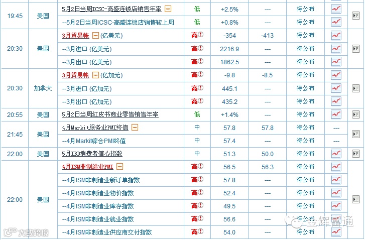 进入纽约时段,投资者需要重点关注美国3月贸易帐、4月ISM非制造业PMI以及加拿大3月贸易帐数据。加拿大方面的数据料将决定加元短线走势,而美国方面的一系列经济数据则会继续主导晚间市场的行情。鉴于寒冷天气及港口罢工等特殊因素,市场并未因美国一季度经济数据的疲软而对美联储升息前景表现悲观。如果晚间公布的数据向好,那么市场信心将得到大幅提振,美元指数也将进一步反弹。