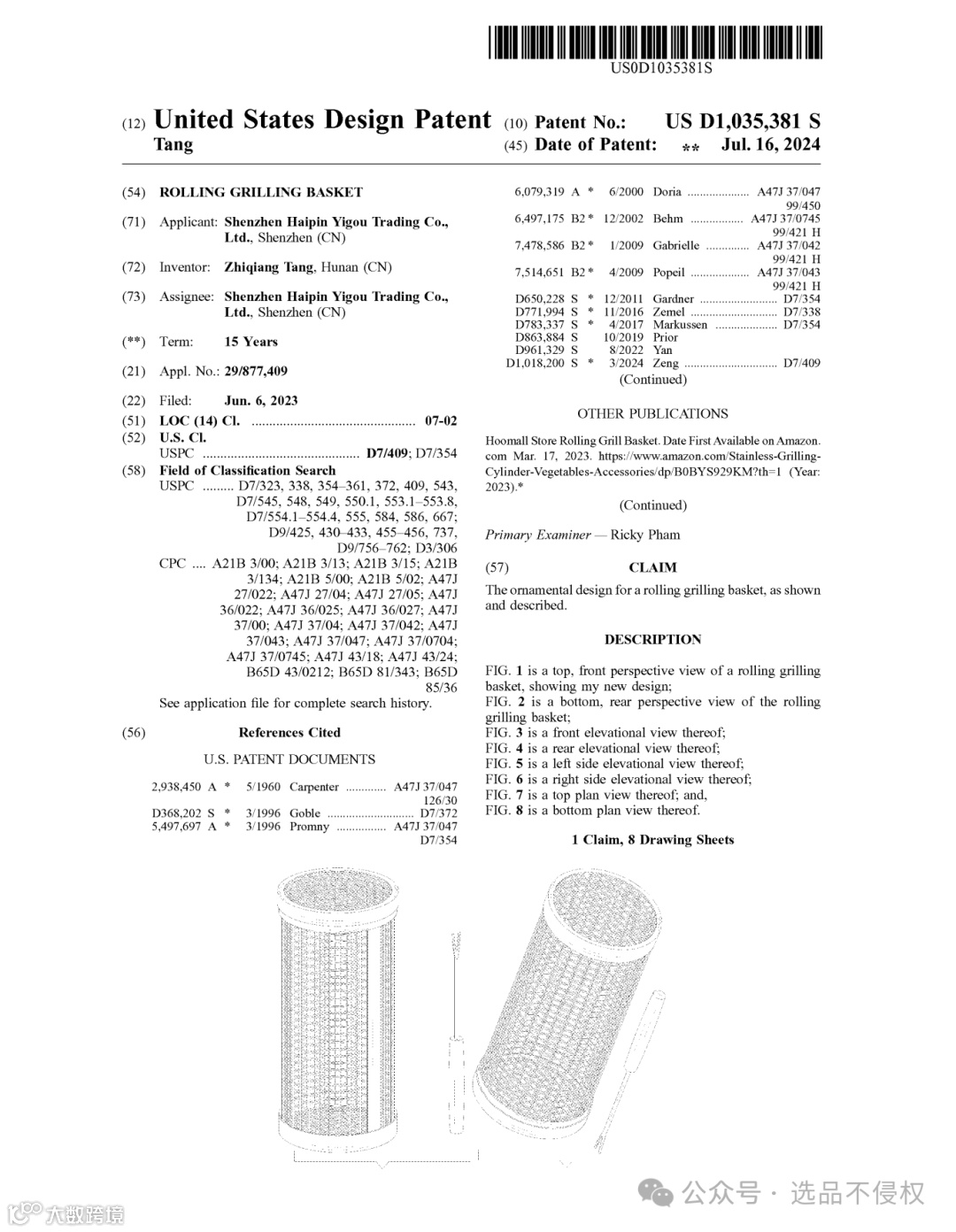 今天分享一个非常火爆的产品专利,该产品的发明专利是美国公司持有的,2021年已下证;最近中国卖家也注册了外观专利,刚刚下证。老铁们选品的时候要避坑,不要侵权。