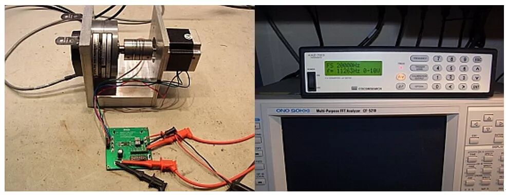 步进电机的运行质量,往往很难准确的量化评估。通常,靠人的眼睛,耳朵,手来判断相对位置,噪声和振动的情况。这些方法都很难精确测量每个细分段的位置精度。一个步距角1.8°步进电机,每八分之一步对应的旋转角度为0.225°,非常小。 在电机运动时,比较容易的测试方法是时域测量, 定位误差会转化为速度的变化。速度随时间的变化可以用示波器测量出来。为了实现这些测量,测试设备需要一个高分辨率的光学编码器和与步进电机支架组装在一起的磁粉制动器。