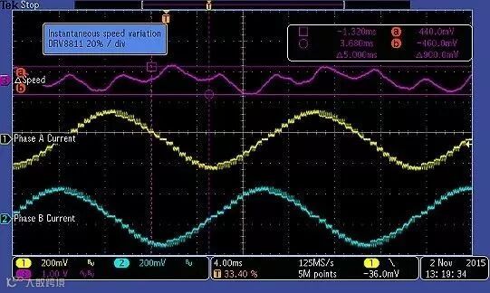 那么,图6就是此测试设置下此电机最理想的运行结果,虽然我们可以通过预调整驱动波形来补偿电机结构引起的问题以进一步提高运行质量。