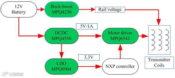 搭配MPS家的其他产品(MPQ6541、MPQ4558和MPQ8904),MPS推出了应用于车载无线充的完整电源管理解决方案(如上图2所示)。此方案极大地降低车载无线充电源管理的成本和空间。