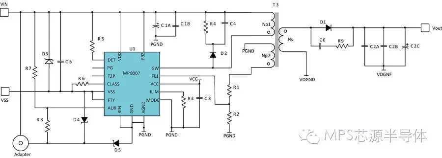 MP8007集成PoE协议和 DCDC电压转换功能于一身。它采用原边电压反馈方式,它不需要TL431, 它不需要Opto-coupler,它不需要外部补偿,它还支持适配器兼容供电,它就是这么完美!