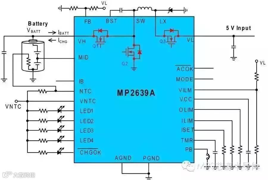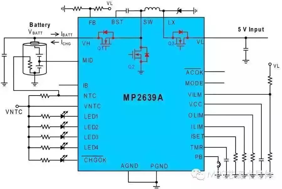 这样实现了不增加电池容量的情况下,在放电的时候通过降压变换,提供高达5A的放电电流。同时,MP2639A采用先进的制造工艺,将功耗控制在较低的水平,充电效率最高可接近96%。