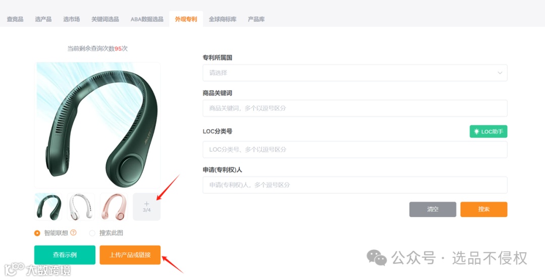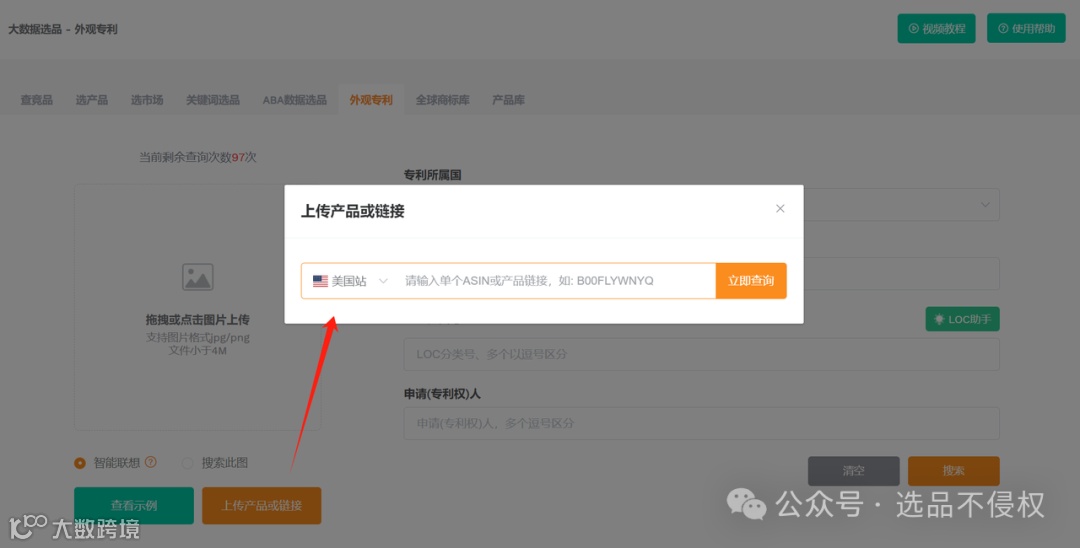 如果你没有产品图片,还可以直接输入产品ASIN或者产品链接,系统会自动抓取产品的主图来对比数据库中的专利图片。