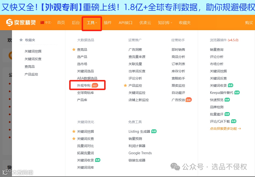 选品不侵权交流群里经常有卖家提问:有没有快速查外观专利的方法,最好用图片就能查的那种,越简单越好。今天就给大家介绍一下卖家精灵刚刚推出的超级简单的方法。