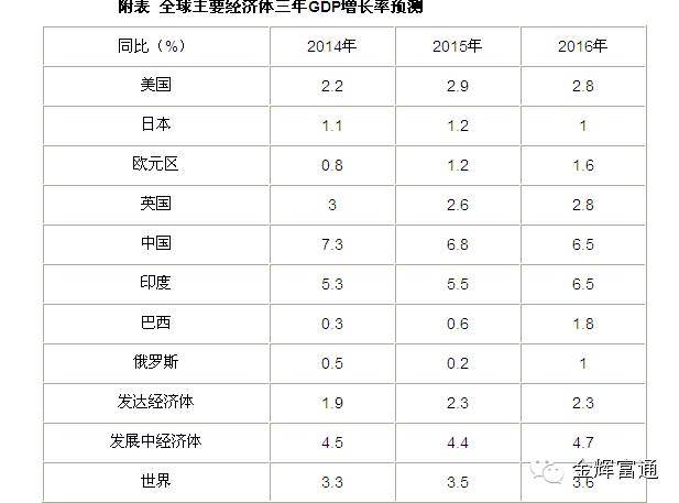 世界经济的显著特点仍是复苏迟滞且不平衡。与历史相比,全球增长仍令人沮丧地缓慢。与40年的平均实际增长率3.8%相比,我们预计2015年和2016年全球增长将从2014年的3.3%温和加速至约3.5%,尚未完全回到长期趋势值。在仍有大量利用不足的资源存在的情况下,全球产品及劳动力市场存在闲置产能预计仍是经济的一个重要特点。