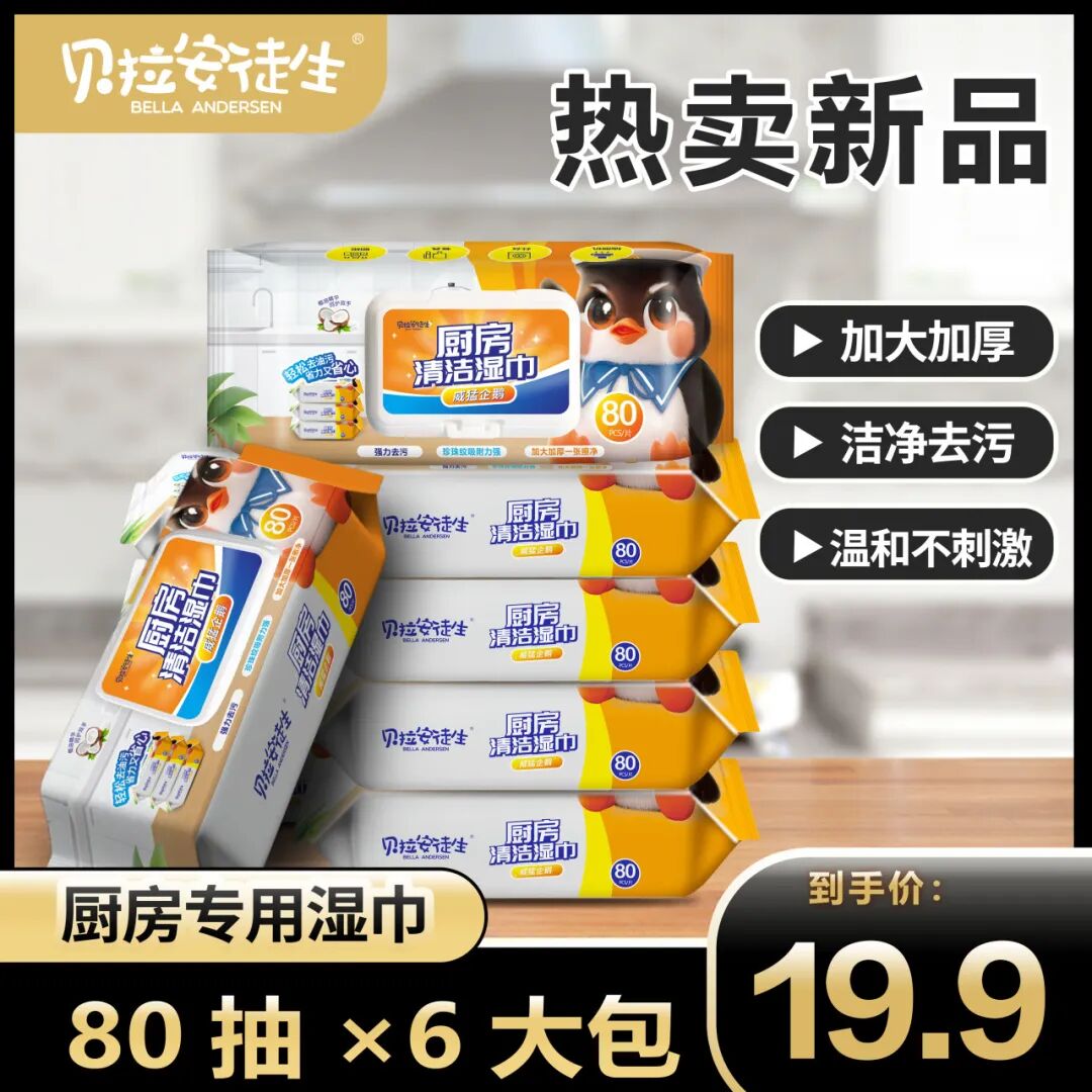 【19.9元6大包】威猛企鹅巨无霸厨房清洁油污湿巾加大加厚油污克星H