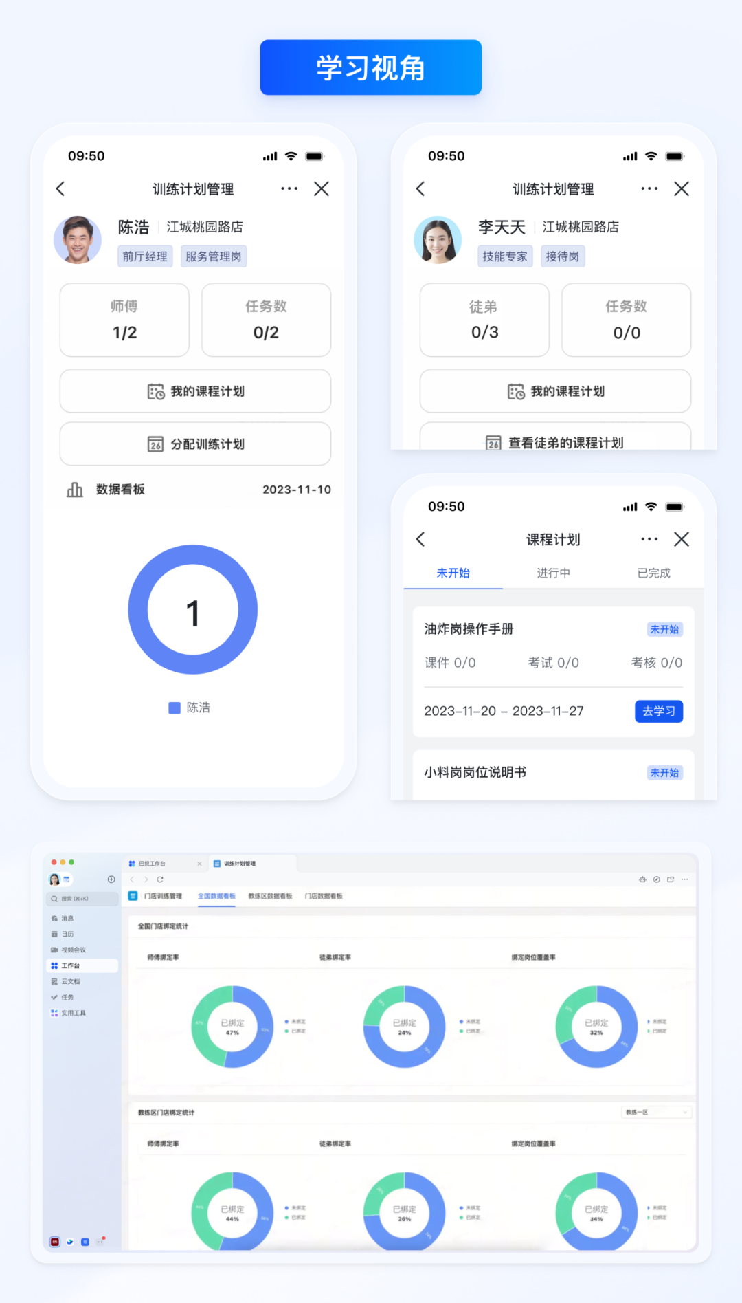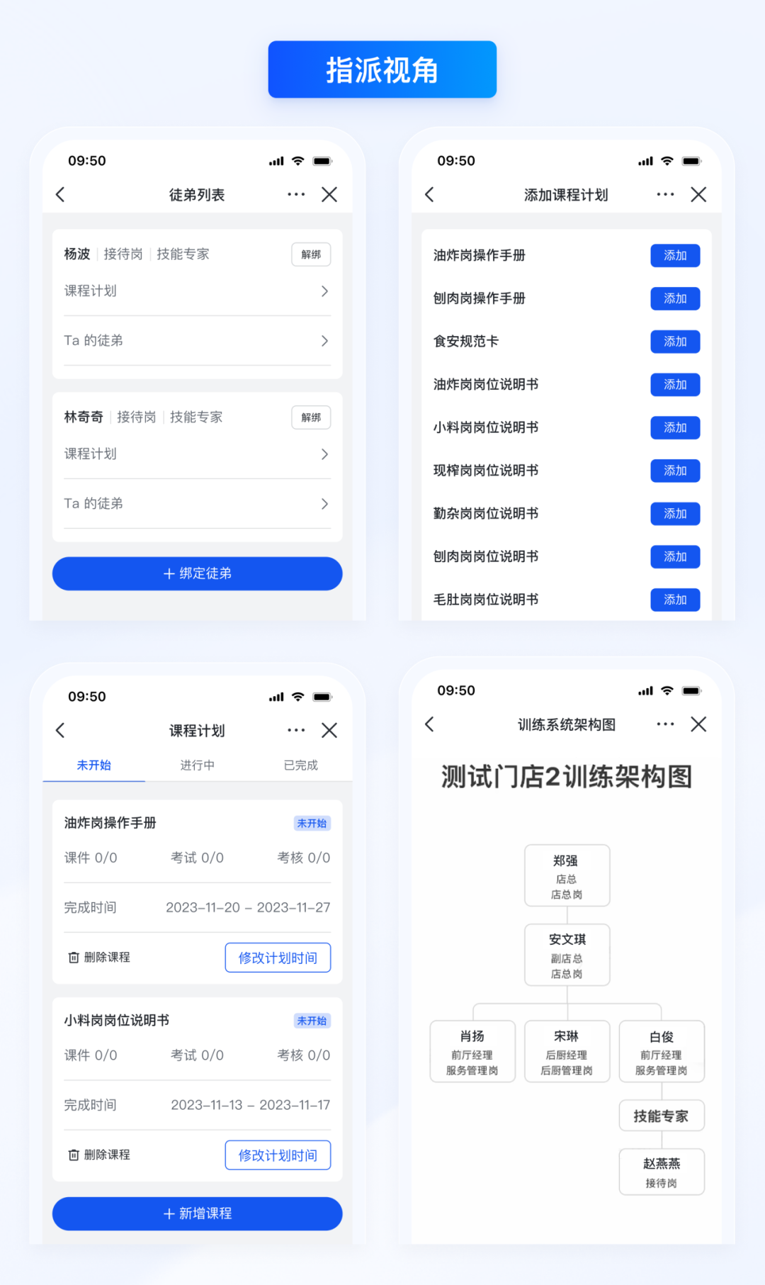 店长和经理可以在手机上完成师徒指派、课程计划、查看架构 👇