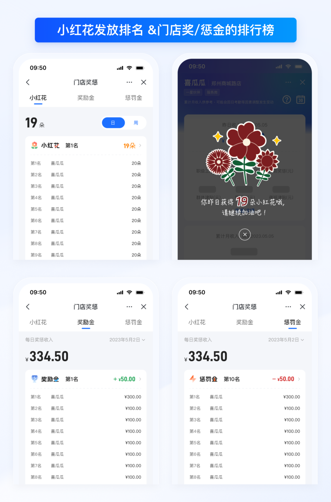如此一来,门店员工每天打开飞书,不仅能看到自己的收入,奖惩情况也一目了然,还能围观门店的奖惩排名、力争上游。