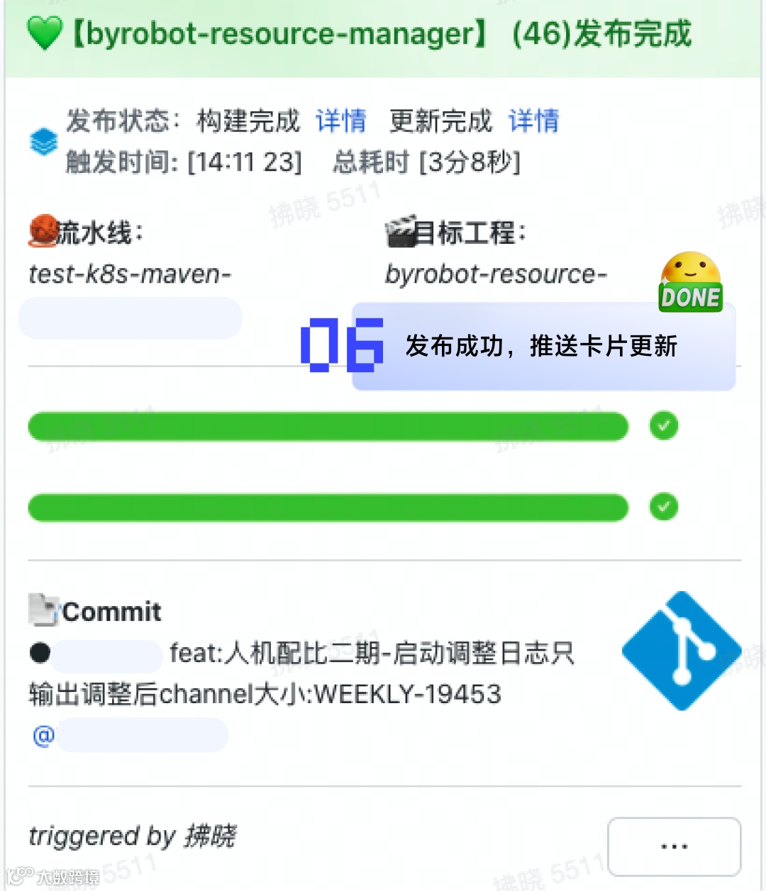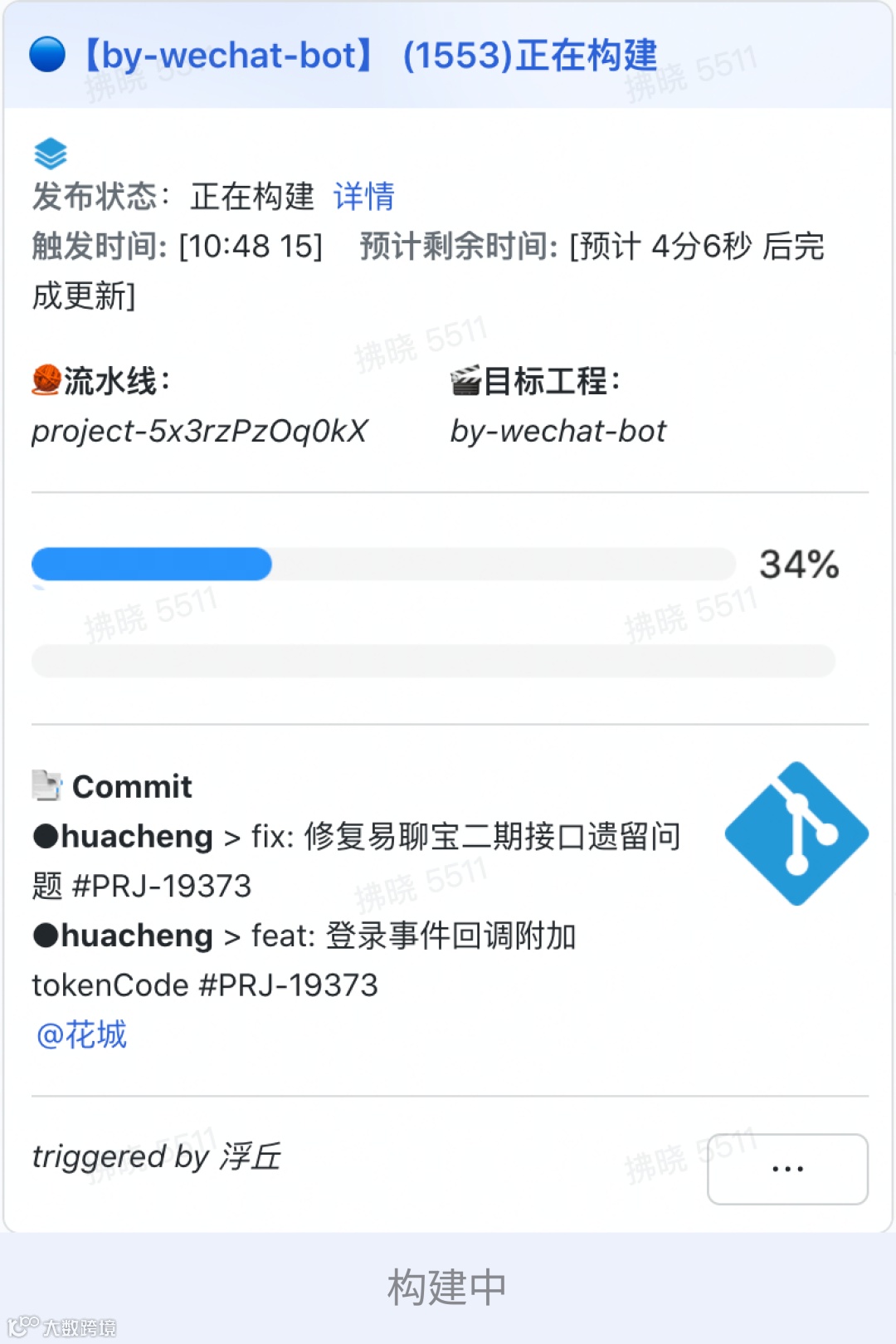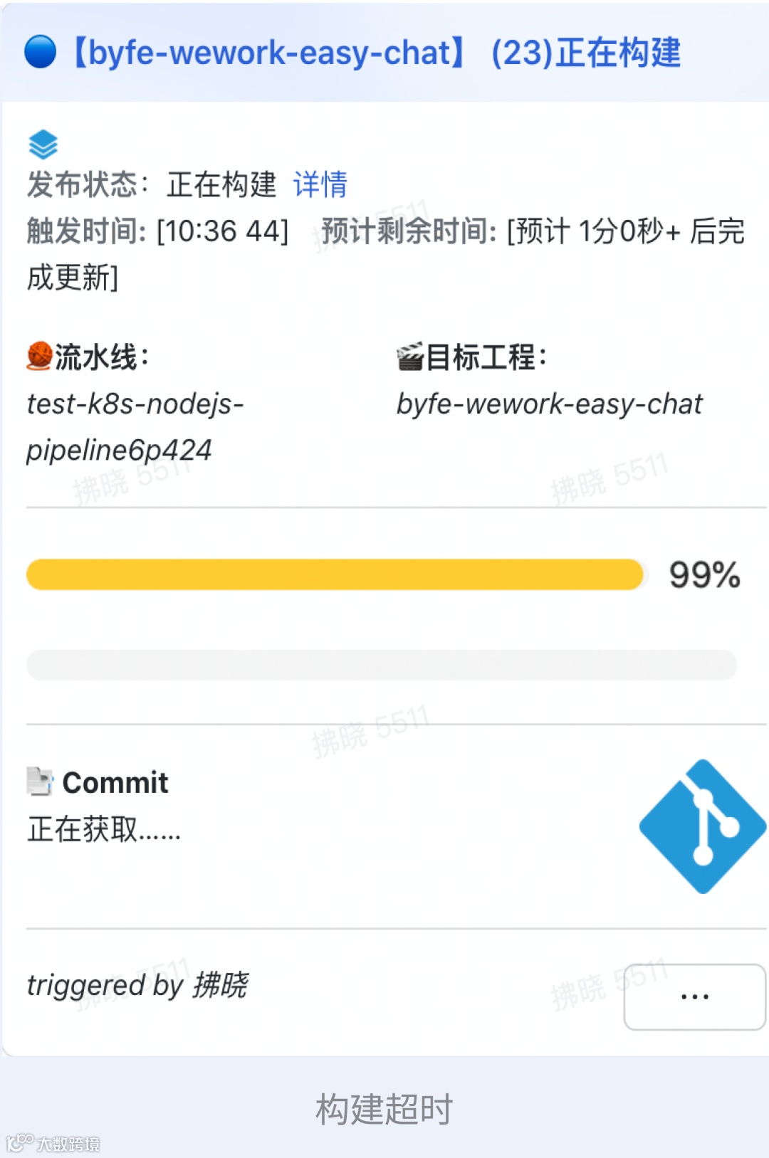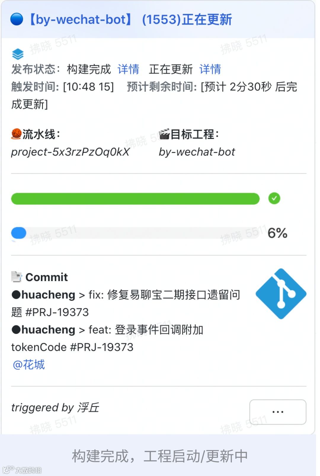 当我们准备更新工程时,首先需要打开公司的 CI 平台(可能是 k8s,也可能是其他 CICD 平台),当然我们可能是提前登录好的,接着我们要找到工程对应的项目空间 —— 搜索出目标工程 —— 点击触发构建流水线,这个时候还需要分心去关注构建是否完成/成功,构建完成后还要关注容器替换/运行有没有错误。