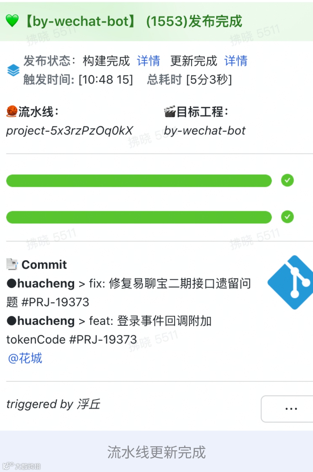 上面这段视频是「CI 发布终端」(应用的名称)典型的应用场景,仅仅通过聊天,就可以以极小的代价,完成整个应用更新。只需要我们一次点击(这一次点击相当于审批通过),CI 发布终端会自动且优雅地完成剩下的一切。