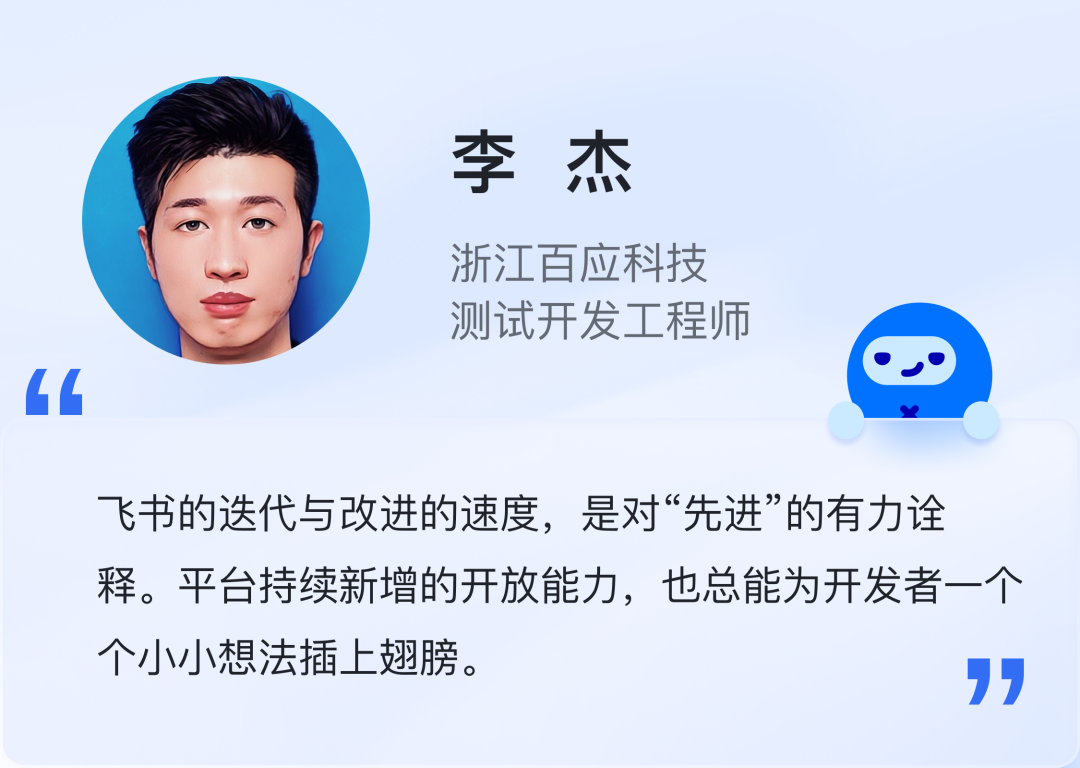 今天的主角是开发者——李杰,借助飞书开放能力,他让日常工程更新完全融入了飞书,项目部署只需分分钟!
