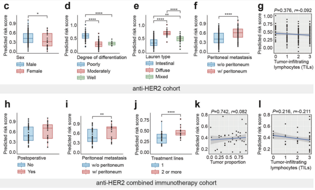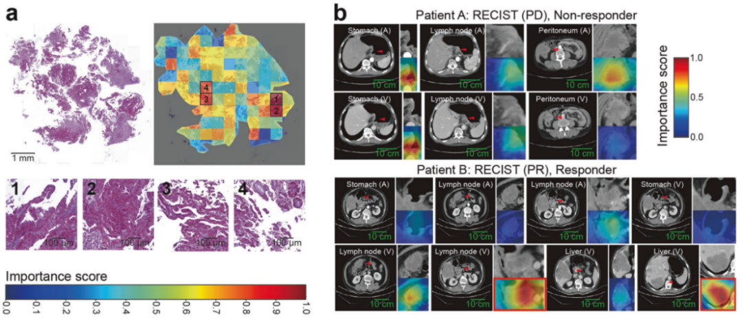 通过Grad-CAM、重要性评分等可视化技术,证实模型的关注区域与HER2表达区、关键病灶高度相关;其风险预测与肿瘤分化程度、腹膜转移等公认的临床预后因素一致,增强了医生对AI决策的信任度。
