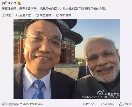 莫迪是印度第一位在微博开通账号的高级官员,据说在他第一条微博发送前,虽然新德里还是清晨,但莫迪仍亲自过目微博内容,并提出修改意见。